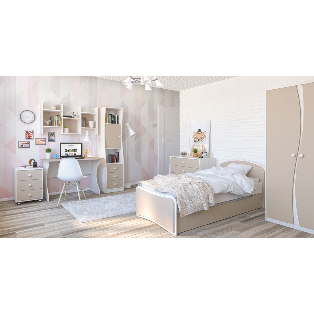 Двухстворчатый детский распашной шкаф для одежды со штангой Комби МН-211-16 капучино