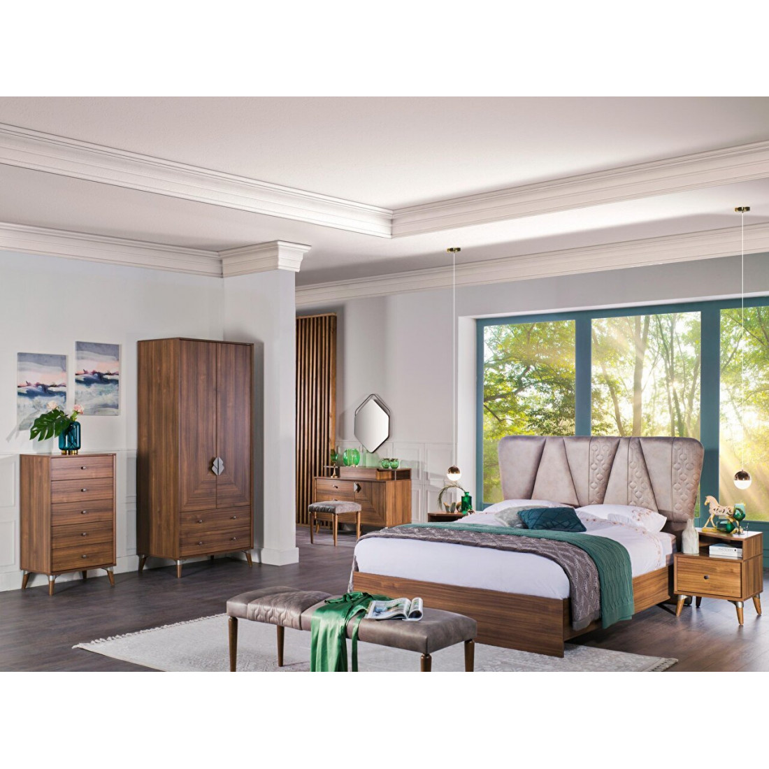 Изделия представлены в цвете грецкого ореха. Ручки изделий в наборе представлены металлические. Высокие ножки позволяют легко убираться в доме.