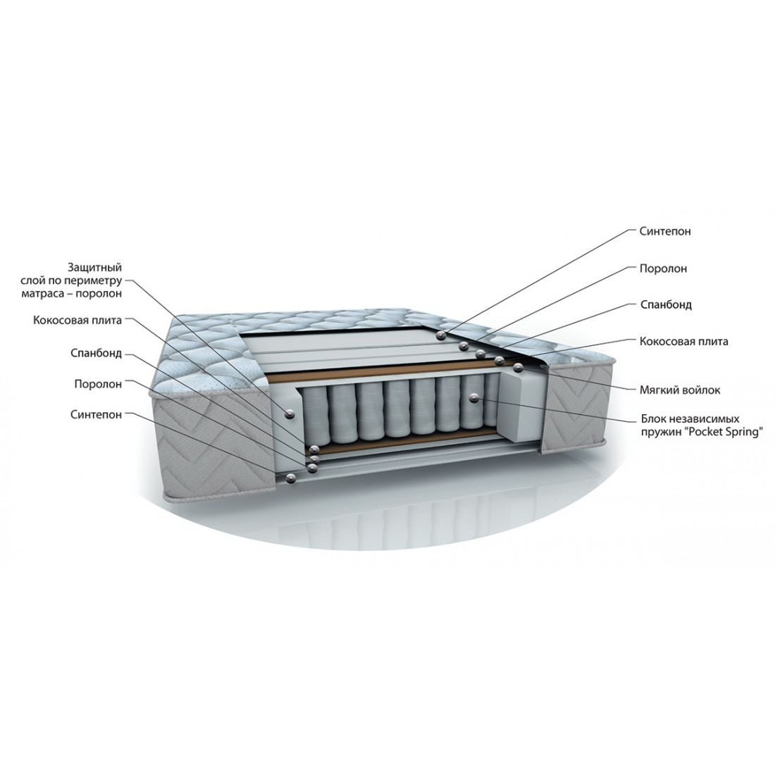 Блок независимых пружин - это блок, который обладает особыми эргономическими и механическими свойствами. Он состоит из цилиндрических, или бочонкообразных пружин, каждая из которых находится в отдельном закрытом мешочке и не имеет металлической связки с другими. Сжатие каждой отдельной пружины в блоке происходит назависимо от соседних пружик, создавая тем самым ортопедический эффект и правильную поддержку позвоночника. В данном матрасе Alize применяются блоки независимых пружин с плотностью 500 пружин/кв.м. и диаметром проволоки 1,8 мм. Это очень хороший, высокий показатель.