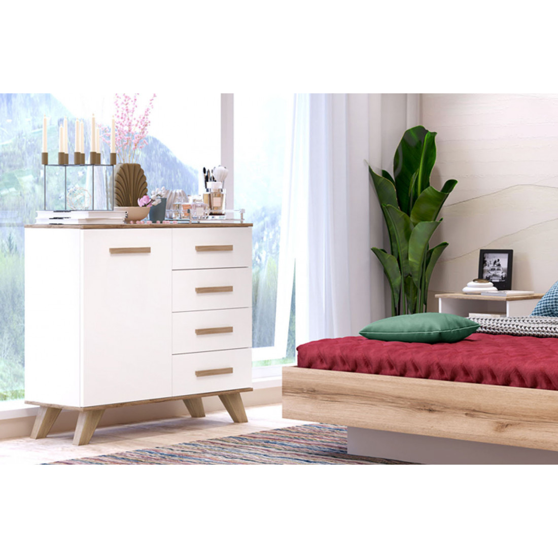 Комод на высоких ножках «Вега Скандинавия» практичен, подойдет для использования в качестве тумбы под телевизор или для белья в спальне.
