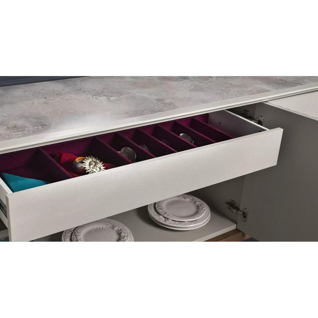 Буфет "Песаро" выполнен в современном стиле и украсит собой любую гостиную или столовую. Текстура светлого мрамора и необычные ножки придают еще больше респектабельности буфету. Используется современная фурнитура.