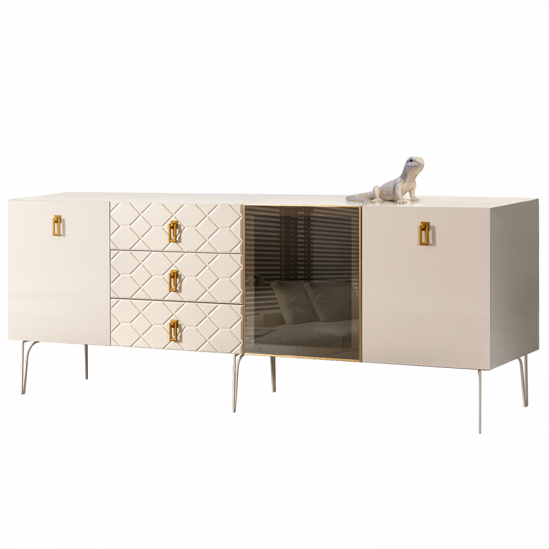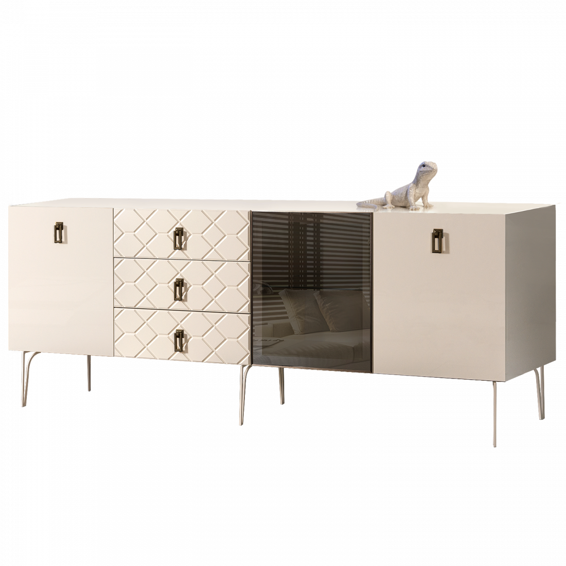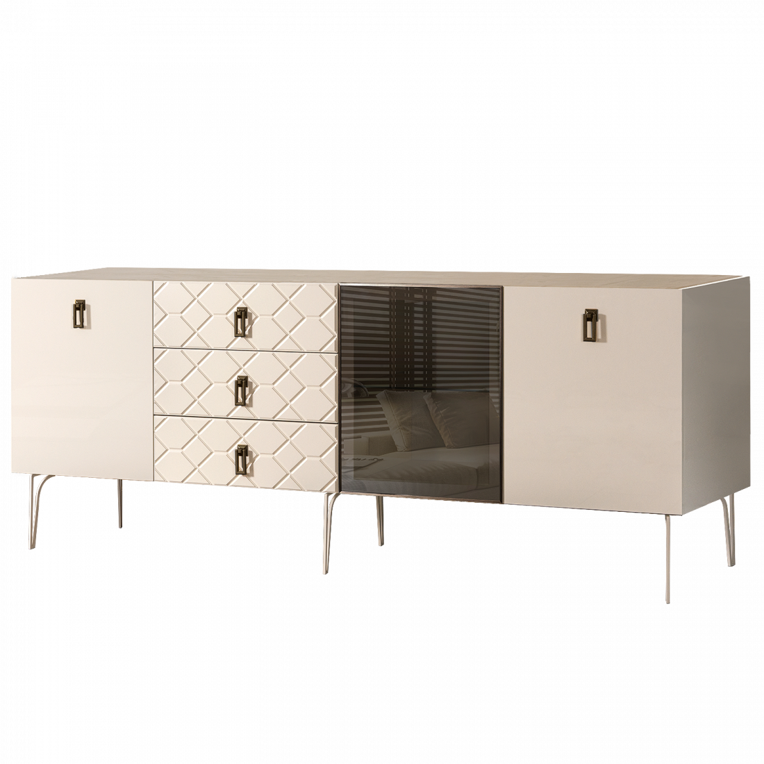 Стекло Stopsol меняет свои отражающие свойства под воздействием источников света. Поверхность, отражающая свет, мягко скроет содержимое вашего комода или витрины.