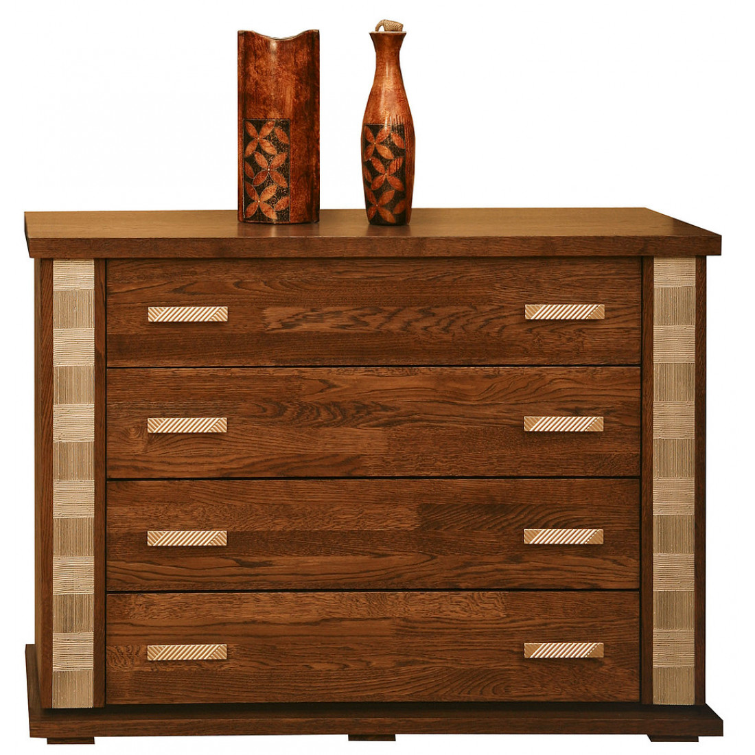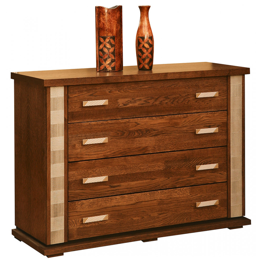 Комод "Тунис" с выдвижными ящиками из коллекции белорусского производителя. Отлично подойдет для современных интерьеров, включая лофт. Украшен золочеными декоративными элементами и фурнитурой. Каркас: ЛДСП, ДСП облицованное шпоном дуба; Фасад: клееный щит дуба, клееный щит берёзы, фанера березы.