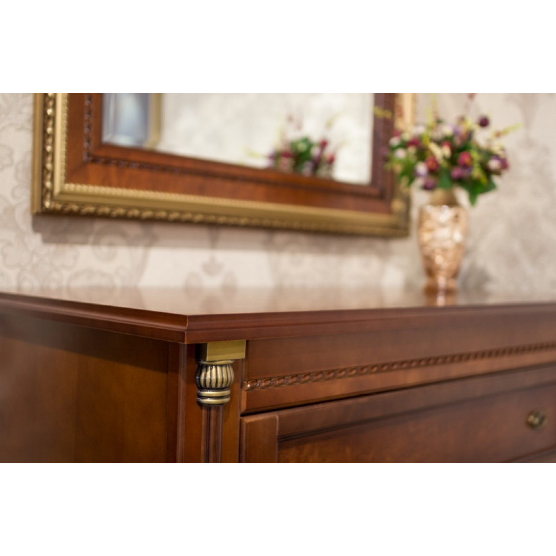 Вместительный комод «Валенсия» П254.31 (каштан)из коллекции Валенсия от белорусского производителя - много организованного места для хранения и элегантная фурнитура.