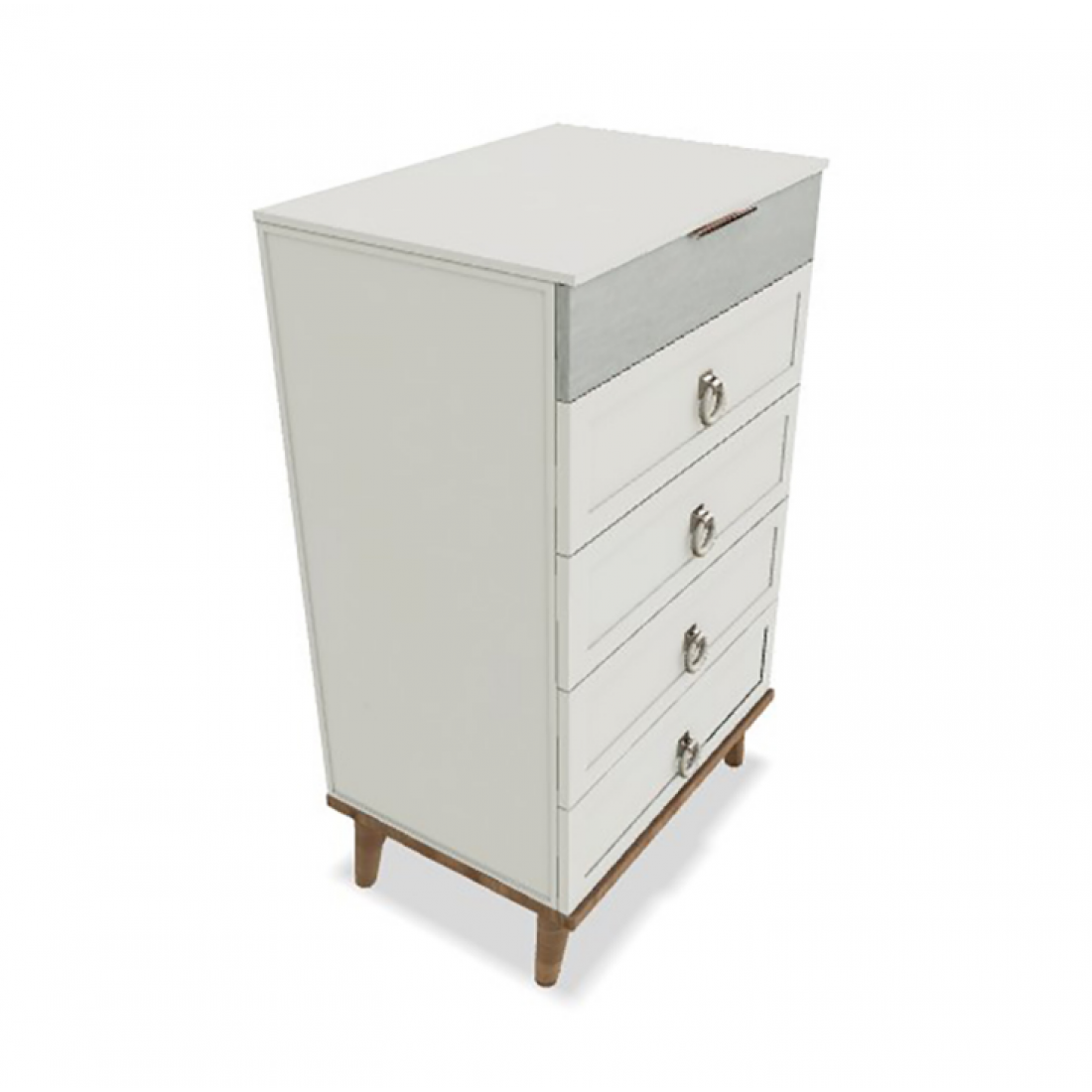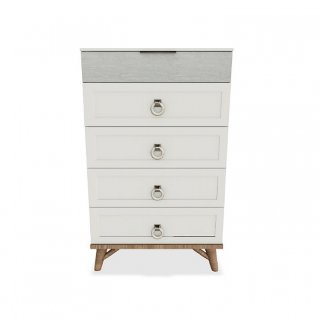 Высокий комод Mavenna Bellona с пятью выдвижными ящиками. Удобный вариант для небольшой спальни. Изготовлен из ЛДСП высокого качества