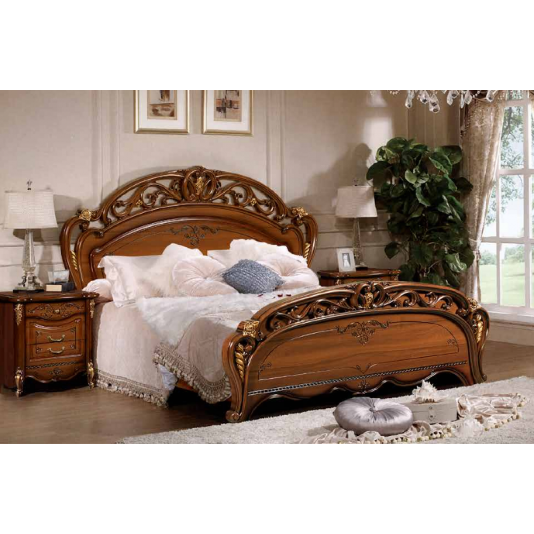 Двуспальная кровать Аллегро (орех) – это большая двуспальная кровать, которая поможет Вам насладиться комфортом и приятно провести ночь после трудного дня. Изголовье кровати декорировано резной вставкой и украшено элегантной росписью. Классический стиль в сочетании с гармоничностью с другими элементами спальни придаст вашей комнате богатую атмосферу и подчеркнет роскошный вкус своего владельца.