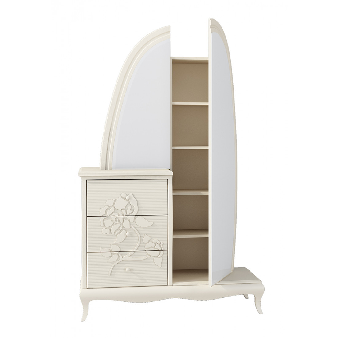 • Фасад шкафа по периметру обрамлен массивной волнообразной рамкой.