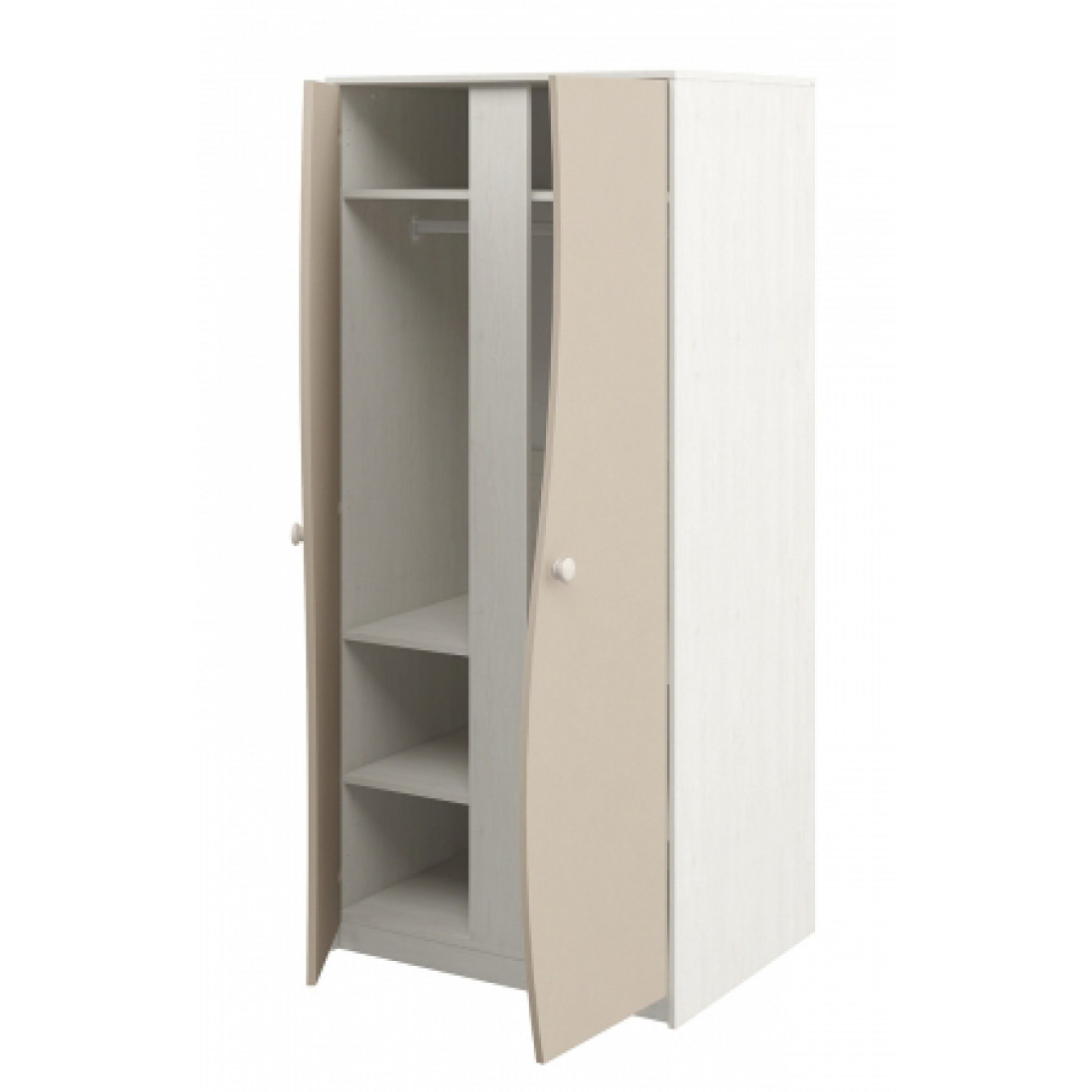 Двухстворчатый детский распашной шкаф для одежды со штангой Комби МН-211-16 капучино