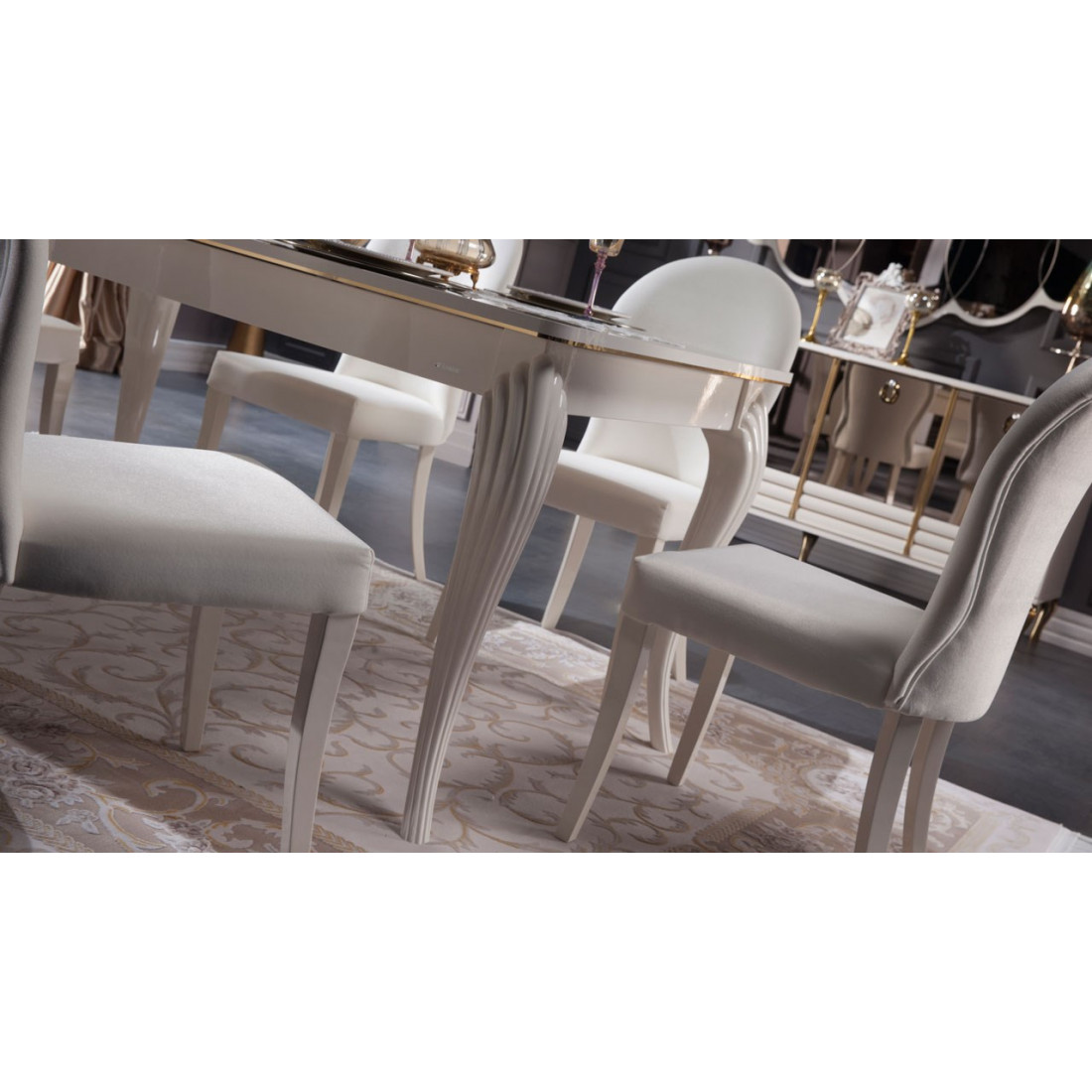Обеденные стулья ELIT-16-02 для гостиной серии Элит от Беллона в нежном кремовом оттенке наделены высокой удобной спинкой и устойчивой конструкцией. Корпус выполнен из массива, облицован глянцевым пластиком.