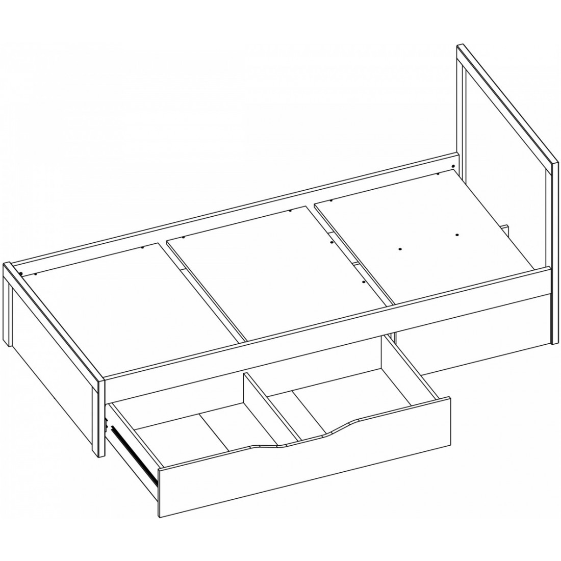Односпальная кровать Бьёрк 90 — предмет современной коллекции в стиле Loft, где все элементы мебели выполнены в декорах ольха полярная и оникс с использованием уникальной структуры плиты.