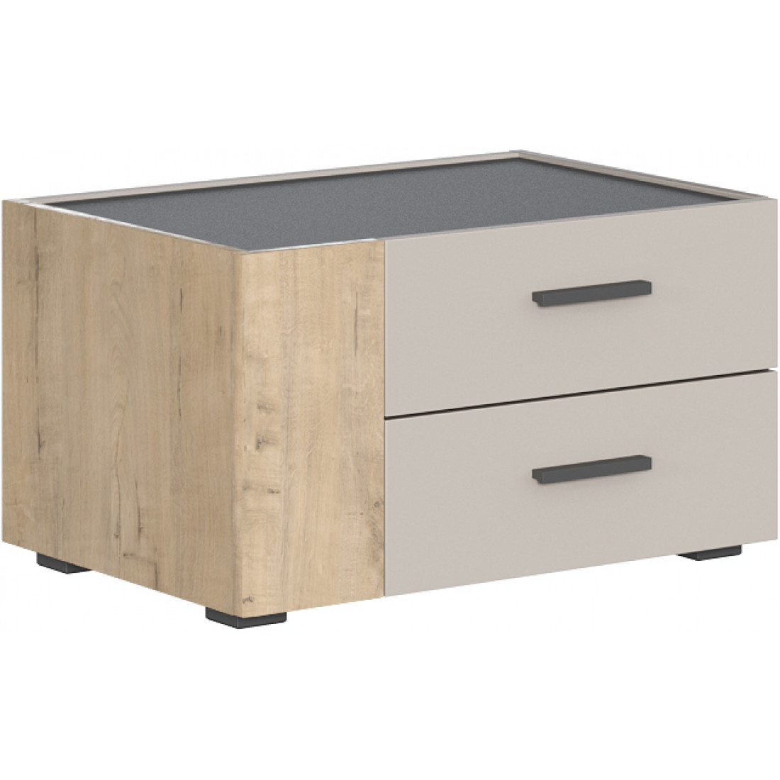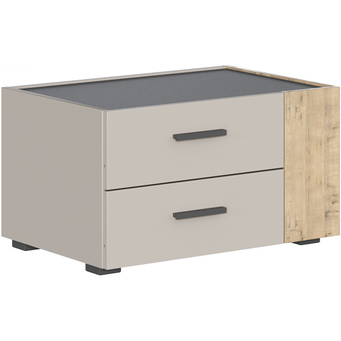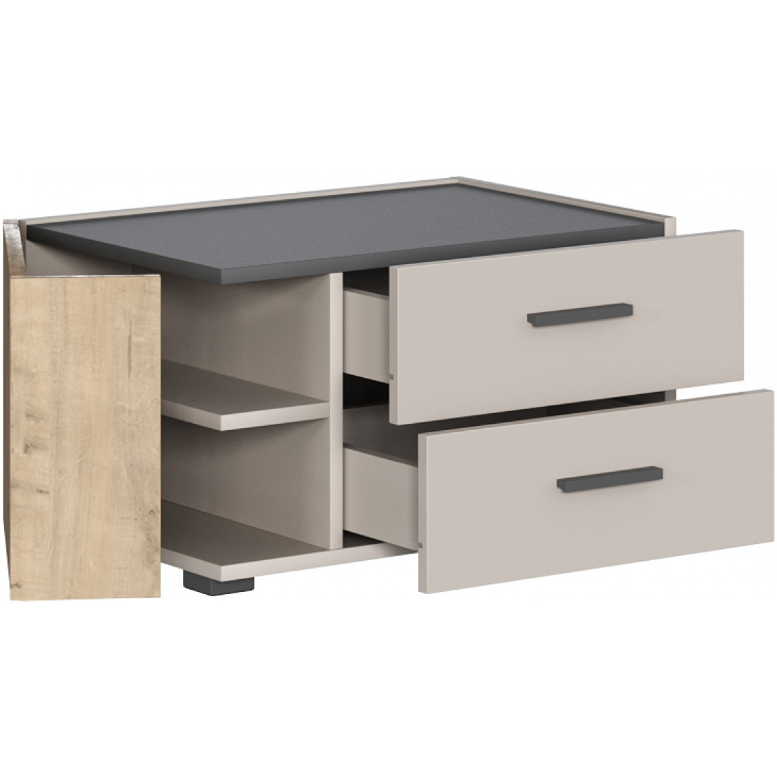 • Тумба с 2-мя выдвижными ящиками и распашным угловым фасадом;