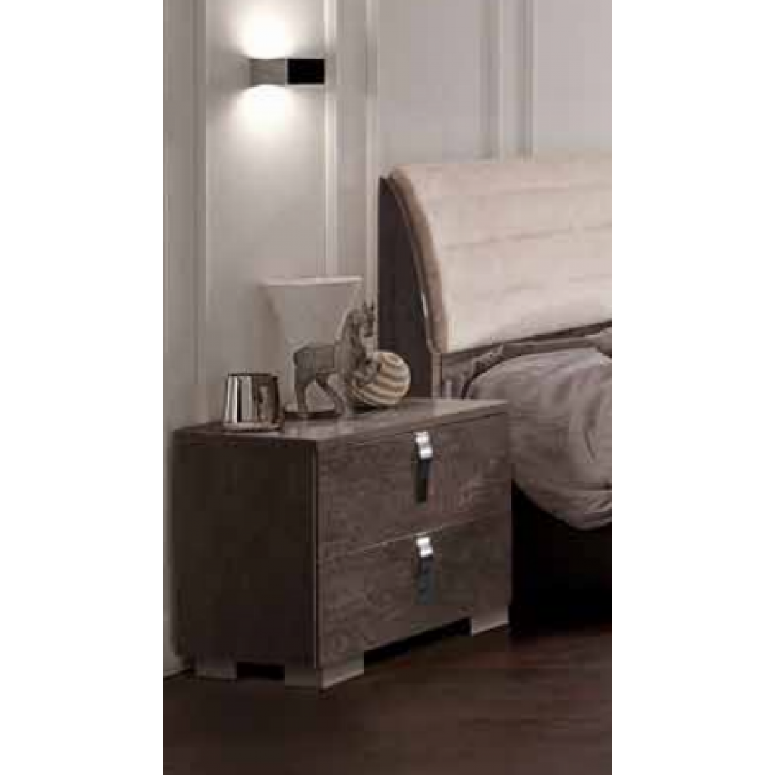 Прикроватная тумбочка Вирджиния – это самый необходимый модуль в любой спальне. Маленькая но вместительная тумба поможет держать все необходимые маленькие вещи под рукой, на ней с легкостью поместиться не большой прикроватный светильник. Она имеет две не большие выдвигающиеся полки а маленькие ручки в виде вертикальной скобки не только облегчит ее использование но и подчеркивает аристократический вид спальни.