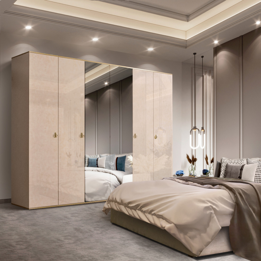 Четырехстворчатый шкаф для одежды с зеркалом Rimini РМШ1/4 (латте)