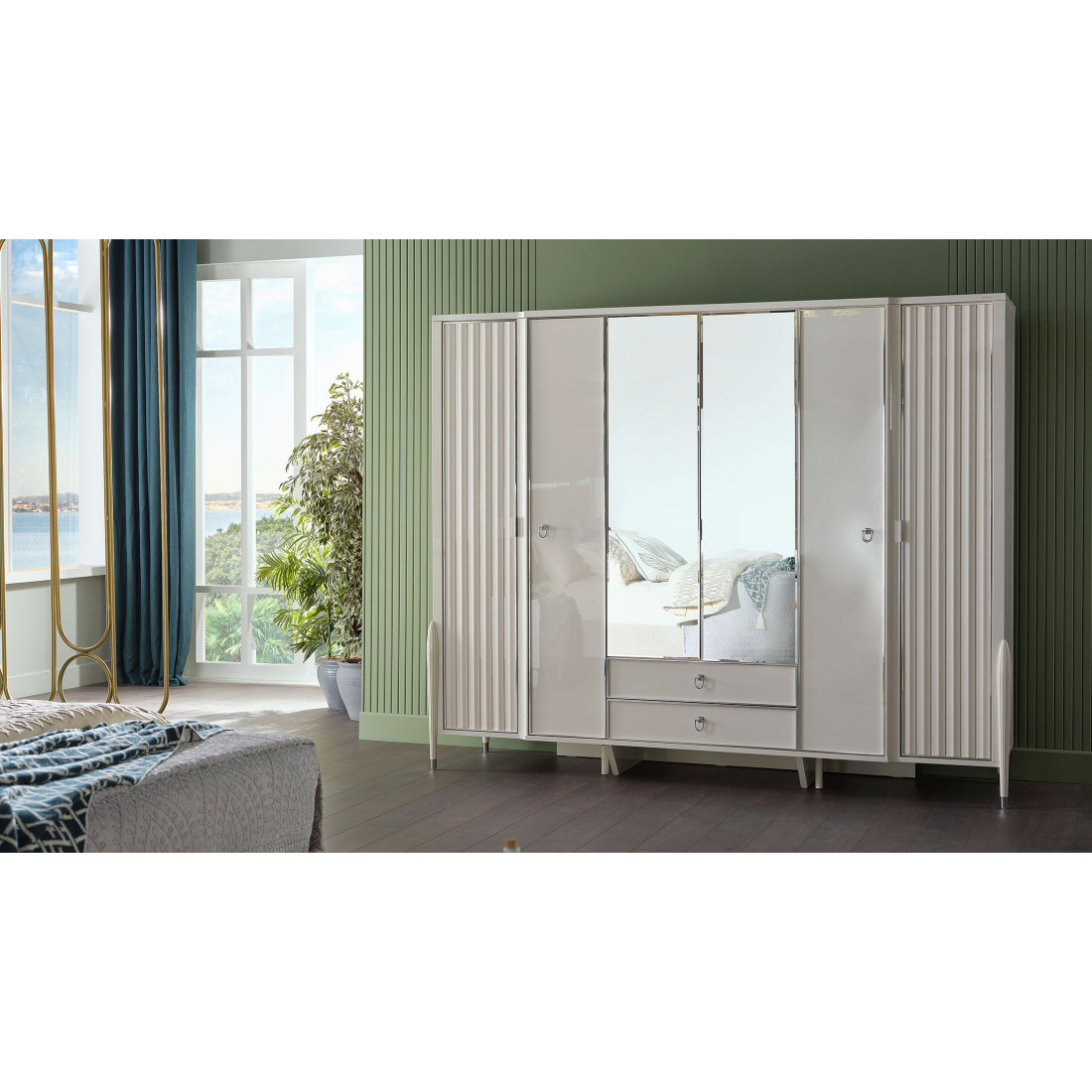Шестистворчатый шкаф Gravita (Гравита) GRAV-34 слоновая кость