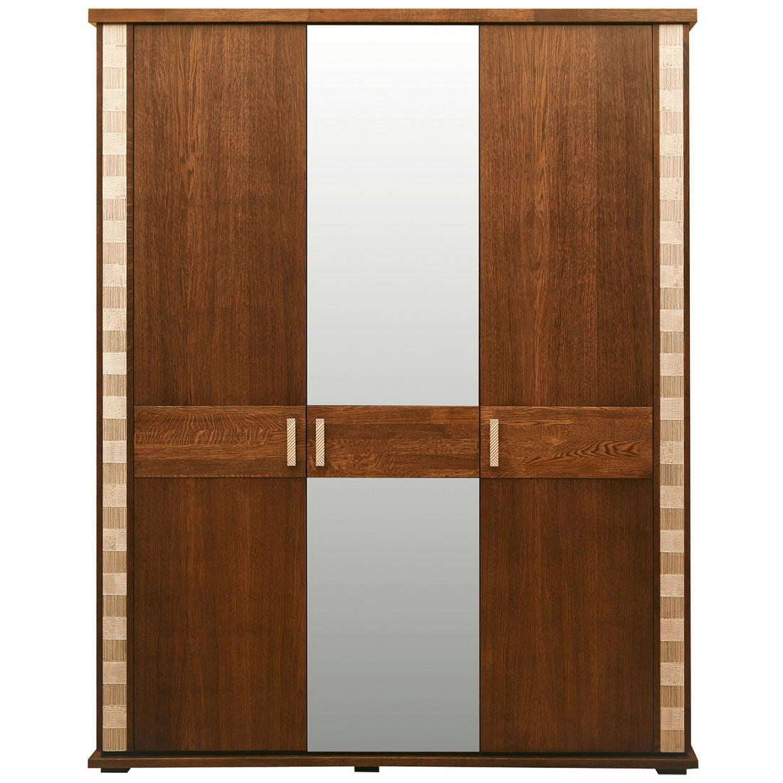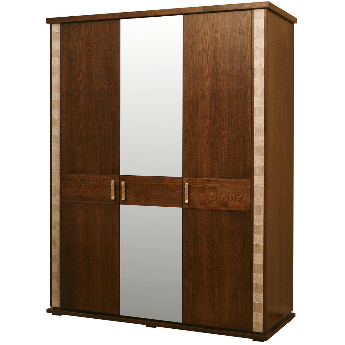 Трехстворчатый шкаф для одежды с зеркалом из коллекции Тунис от белорусского производителя. Оснащен штангой для одежды и полками, что позволит организованно хранить даже самые объемные вещи.