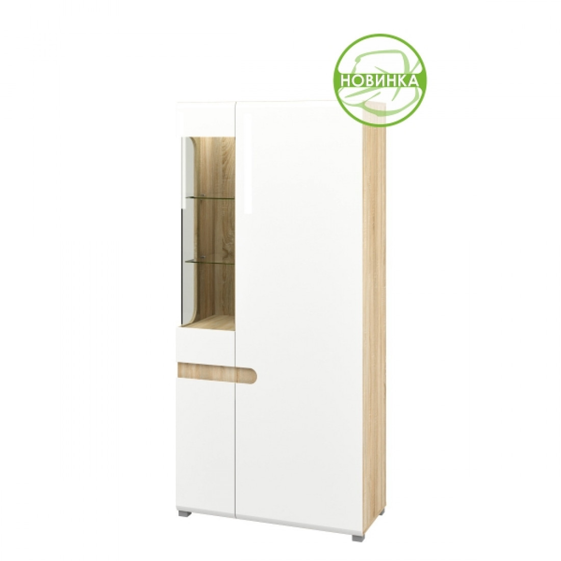 Особенности двухстворчатого комбинированного белого правого шкафа витрины Леонардо МН-026-19: