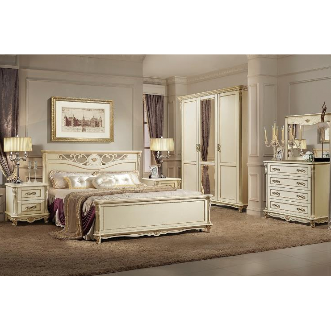 При создании спальни "Алези" предпочтение было отдано самому прочному материалу - массиву дуба, представленному в двух цветовых вариантах: "античная бронза" и "слоновая кость с патиной". Особое внимание уделено декоративным узлам и элементам, придающим линиям плавность и изящество: пилястрам, опорам, карнизам. Резьба и позолота утонченно подчеркивают их красоту.