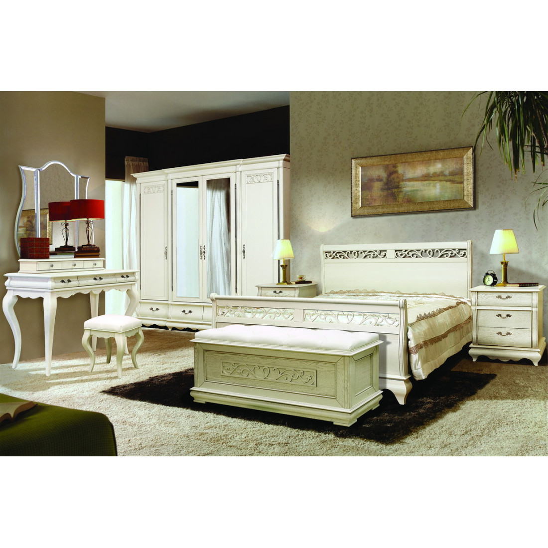 Популярная коллекция "Оскар" фабрики Молодечномебель объединяет в себе наборы для гостиной и столовой, библиотеки и спальни. Последний (но не по значению) относится к классическому стилю с элементами арт-деко. Фасады и объемные цоколи моделей выполнены в округлых изогнутых формах с волнообразной кромкой. В изголовьях и изножьях кроватей, на фасадах шкафов и других предметах присутствует единый резной растительный узор. Помимо привычных комодов и прикроватных тумб, в коллекцию также добавлен прикроватный сундук для хранения постельных принадлежностей. Мягкий элемент с кожаной обивкой на крышке позволяет с комфортом присесть на сундук как на банкетку. Кстати, банкетки разных размеров также представлены в коллекции «Оскар». Коллекция выполнена с использованием массива и шпона дуба, а спальни из дуба, как известно, отличаются надежностью и безопасностью. Дополнительной гарантией безопасности выступают и нетоксичные лаки и краски на водной основе, деликатно подчеркивающие красивый узор древесины. Мебель для спальни «Оскар» поставляется в насыщенном темном оттенке «Орех» и мягкой «Белой эмали с темной патиной».