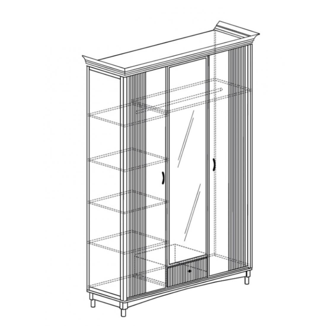 Шкаф 4-х дверный зеркальный Неаполь Ясень анкор светлый (патина "серебро")