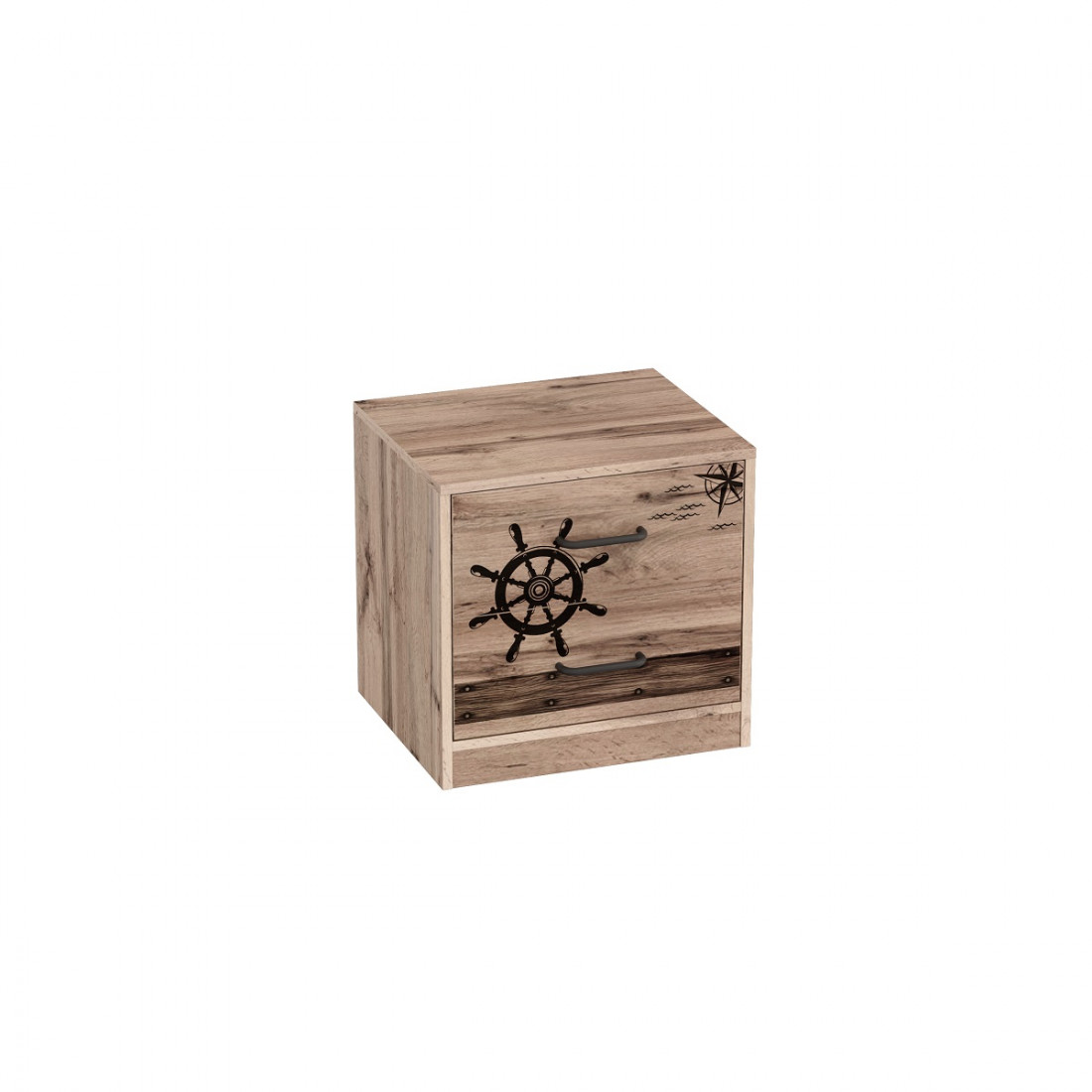 Детская невысокая тумба из коллекции Фрегат от фабрики МебельГрад может исользоваться как прикроватная тумбочка для ребенка.Фасад тумбочки как и другие предметы коллекции Фрегат выполнен в оригниальном стиле с рисунками в виде пиратских карт.